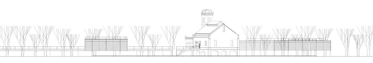 08-09. assim como no conjunto da pólvora, respeita-se a orientação espacial absoluta norte-sul, leste-oeste, como forma de orientação e contraste com o volume preexistente.