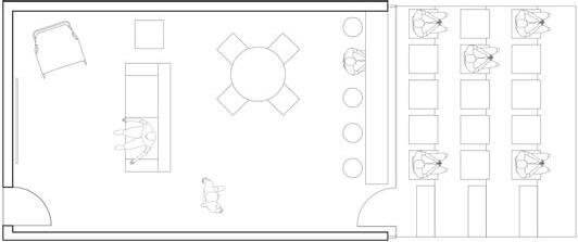 Um percurso periférico protegido pela generosa cobertura do edifício circunda toda a planta, o que significa que independentemente da direção pela qual o visitante se aproxime, uma vez acolhido pela Casa, todas as rotas estão disponíveis. O acesso noroeste prevê uma larga escadaria em leque que se desenvolve ao redor do salão de reuniões principal. Uma pequena fenestração oferece a possibilidade de saber se há alguma atividade de interesse em andamento.