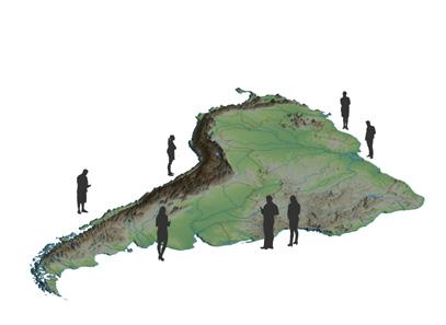 Os visitantes são recebidos por uma enorme maquete topográfica representando a vastidão do território brasileiro. Um projetor de alta definição lança sobre o mapa animações em computação gráfica que revelam as diversas características da natureza no Brasil.