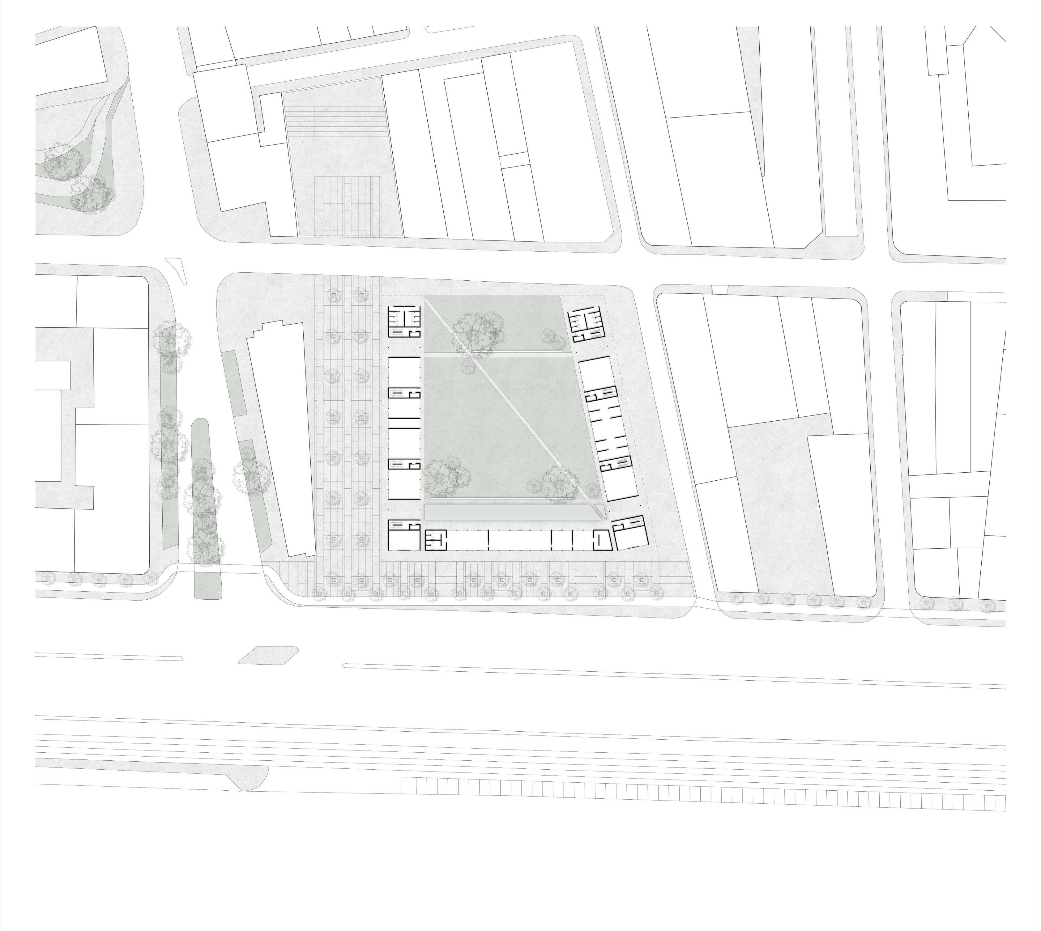 ADHC POLIMI 2022-2023 PAULO DAVID _ BARBARA BOGONI _ CAMILLO MAGNI GROUP 01 CIBOTTO MARINA_CORRADINI CHIARA_LI HAOXING_PEREA PEDRO PABLO CITY WATER . INTENSITY M03 DESIGN DWELLING (WITH)IN THE LIMIT 02 ADHC POLIMI 2022-2023 PAULO DAVID _ BARBARA BOGONI _ CAMILLO MAGNI CITY WATER . INTENSITY M03 DESIGN DWELLING (WITH)IN THE LIMIT 03 GROUP 01 CIBOTTO MARINA_CORRADINI CHIARA_LI HAOXING_PEREA PEDRO PABLO VOLUMETRIC PLAN scale 1:1000 DIAGRAM DESIGN PROCESS 080 1. building vertical guidelines 2. building orizzontal guidelines 3. existing public space guidelines 4. new urban connection 5. new square with frame towards the river COLLAGE URBAN SKYLINE LOCATION PLAN scale 1:500 ENVIRONMENTAL SECTIONS scale 1:500 1. hairdresser 2. laundry 3. tobacco shop 4. diner 5. clothes shop 6. infopoint 7. co-working space 8. free exhibition room 9. minimarket 10. library 11. toy library 7 8 10 11