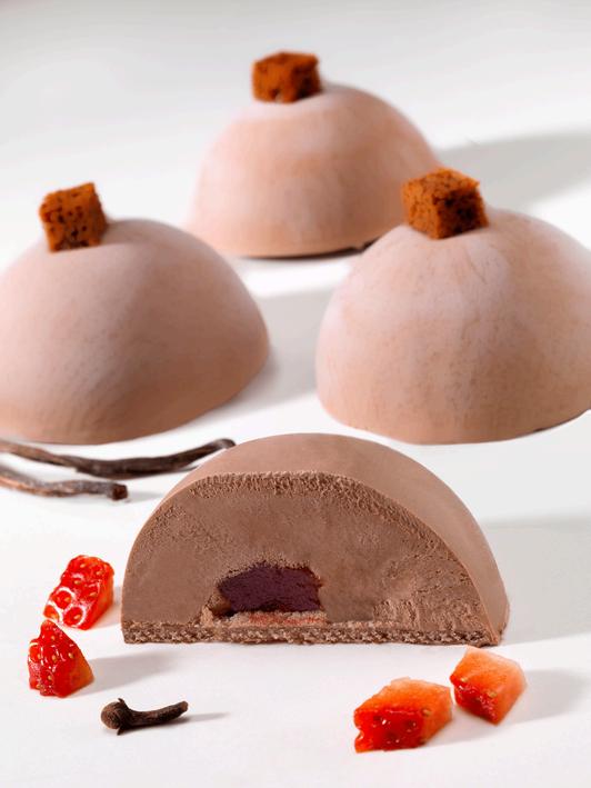 El postre une el chocolate intenso con la acidez fresca de los frutos rojos, logrando un equilibrio vibrante y delicioso en cada bocado