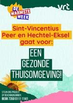 De Warmste Week koos Sint-Vincentius Peer en Hechtel-Ek sel uit als een van de projecten waar ze dit jaar geld voor inzamelen. Het gaat om een project rond een gezonde en hygiënische thuisomgeving. Als armoedevereniging biedt Sint-Vincentius tweewekelijks een voedselpakket aan. Voor mensen in armoede blijft er vaak niet veel budget over om bijvoorbeeld ook wasmiddel en poetsproducten te kopen. Via dit project krijgt Sint-Vincentius fondsen om de tweewe kelijkse voedselpakketten aan te vullen met onderhoudspro ducten. Onontbeerlijk voor een hygiënische leefomgeving thuis en dus ook een gezondere omgeving. Steunen kan via www.dewarmsteweek.be/doneer (cv)