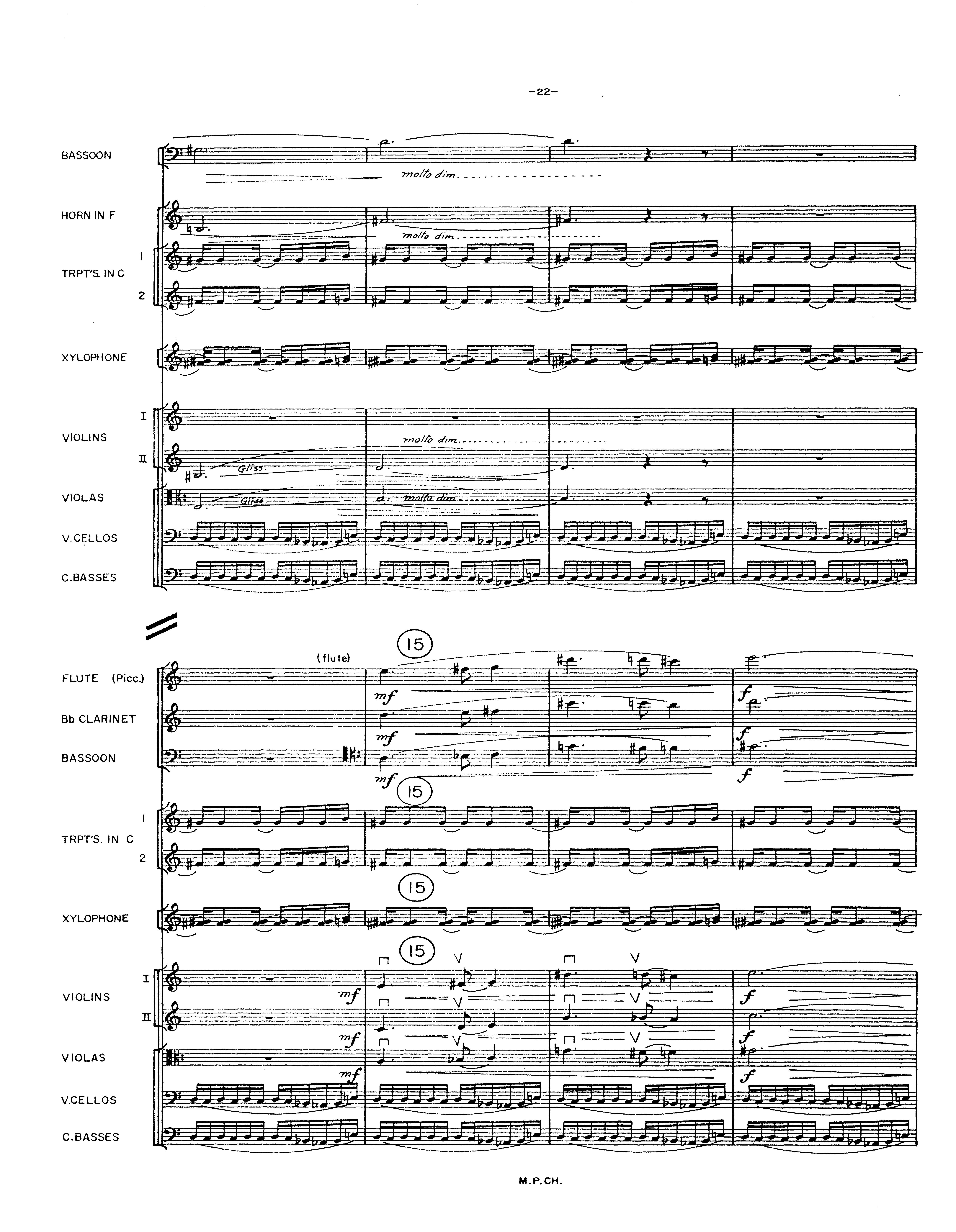 -zzBASSOON mol/o cltm. __ - - -i.tf'l HORN IN F 't.J q..r.1\ TRPT'S. INC -/ f'l 2 ['-"-'__./ XYLOPHONE II IVIOLINS II 7noll"o - -li #iF. VIOLASV.CELLOS C.BASSES (flute) --------;;-· lf:e:· £:"' ·./II FLUTE (Pice.) .., mf l.f:e: . II - ---;;- .....Bb CLARINETi.., '":f - 1{... "--· 11- 1;'_BASSOONI' -mf(15) .,·---::,. - .T i.lf'l - <it :<it TRPT'S. IN C I <tJ--'-"' '--" '-..../ ''-"= p -= -.._.../ '-II 2 - $ 1'..., ._./ ....__.. @ '----' ..___._ ..__.. .._ Ill XYLOPHONE - - "'...,---- ....__. ....__. ....__. ,__.. --•II n @ v n v - - I VIOLINS ...., -mf ___.. f II b·n - n - v .:= -· - r=:· f't.l mf ...,._. f-n v .f. n v . .----:--II VIOLAS -m.f .T ·-· V.CELLOS-· ---=C.BASSES -- - --· _.;.. - -M.P.CH.