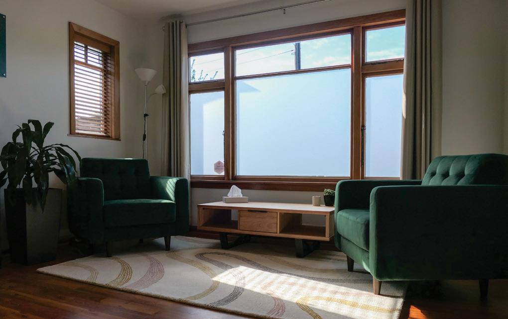 The building has four distinct spaces for clinicians to see patients. Each room is warm, filled with sun and has a comfortable, inviting feel far removed from a traditional clinical health setting.