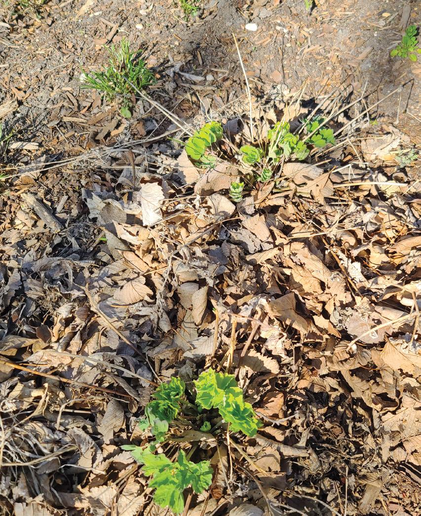 I can already see signs of life in this one-year-old bed. Things I moved in the fall are sending up shoots, and the heucheras are waking up.