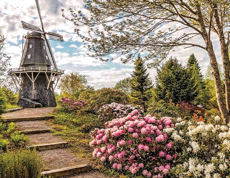 A working windmill is an icon of the garden. It is a one-third scale replica that was built in Holland and brought over as a gift from the Flemers. It is instrumental in circulating water between two ponds to keep it clean.