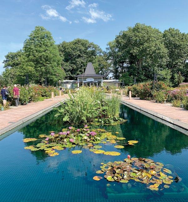 roses in a multitude of hues. It was originally planted in 1965, but over time it became apparent that this monoculture of hybrid teas and floribunda roses was a magnet for insects and disease. It was closed for 2017 and reopened with a completely new beautiful and sustainable ecosystem that includes roses from the past 900 years as well as new Canadian varieties. Going from left to right, they are arranged from the Middle Ages through today.