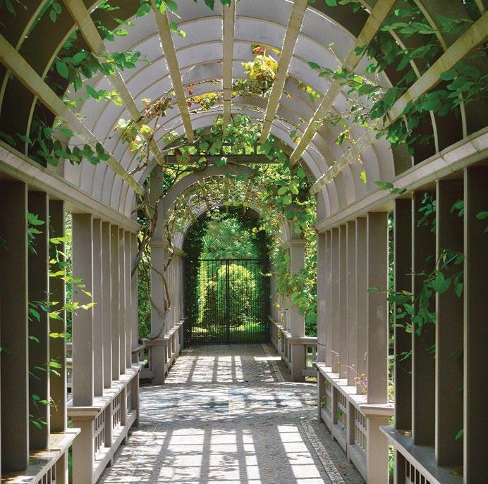 dip their golden chains into pools of purple allium, flanked by swathes of mauve Persicaria bistora and bluebells. On the Azalea Trail, the visitor rubs shoulders with azaleas and magnolia. The cherry grove is a heaven of scented pink, vying with a variety of flowering dogwood that punctuate the gardens.