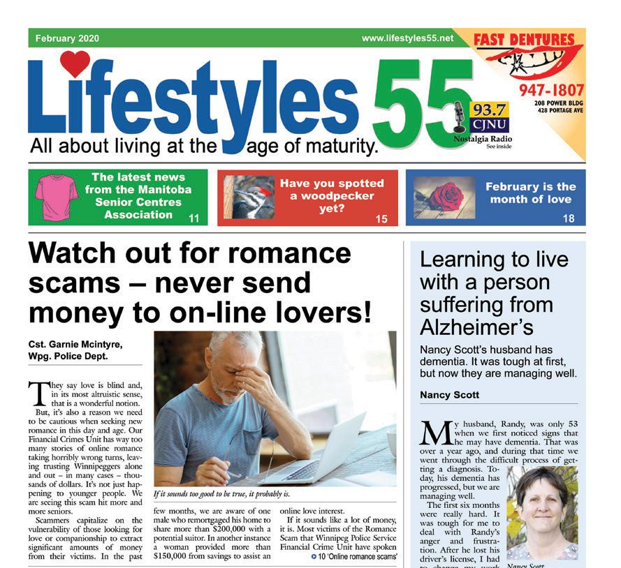 If you would like to receive Lifestyles 55, we offer both monthly newspaper and online formats. To place your order, call 204-9402700. Subscriptions are $48.00 per year, plus tax. American Express, MasterCard, Visa and cheque accepted. To view a back issue online visit lifestyles55.net