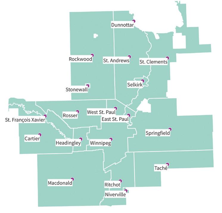 “The CPR currently operates as the Winnipeg Metropolitan Region and is comprised of 18 member municipalities: the Cities of Winnipeg and Selkirk, the Towns of Niverville and Stonewall, the Village of Dunnottar, and, the Rural Municipalities of Cartier, East St. Paul, Headingley, Macdonald, Ritchot, Rockwood, Rosser,