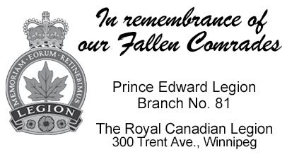 As I write, it is still two weeks before Remembrance Day. I think of this and see a hill high above Hong Kong where the names of all the many Winnipeggers are carved in a very tall stone monument paying homage to the men who gave their lives to protect what we have here today. It is for us to remember what they did and to thank them in our hearts for their sacrifice.