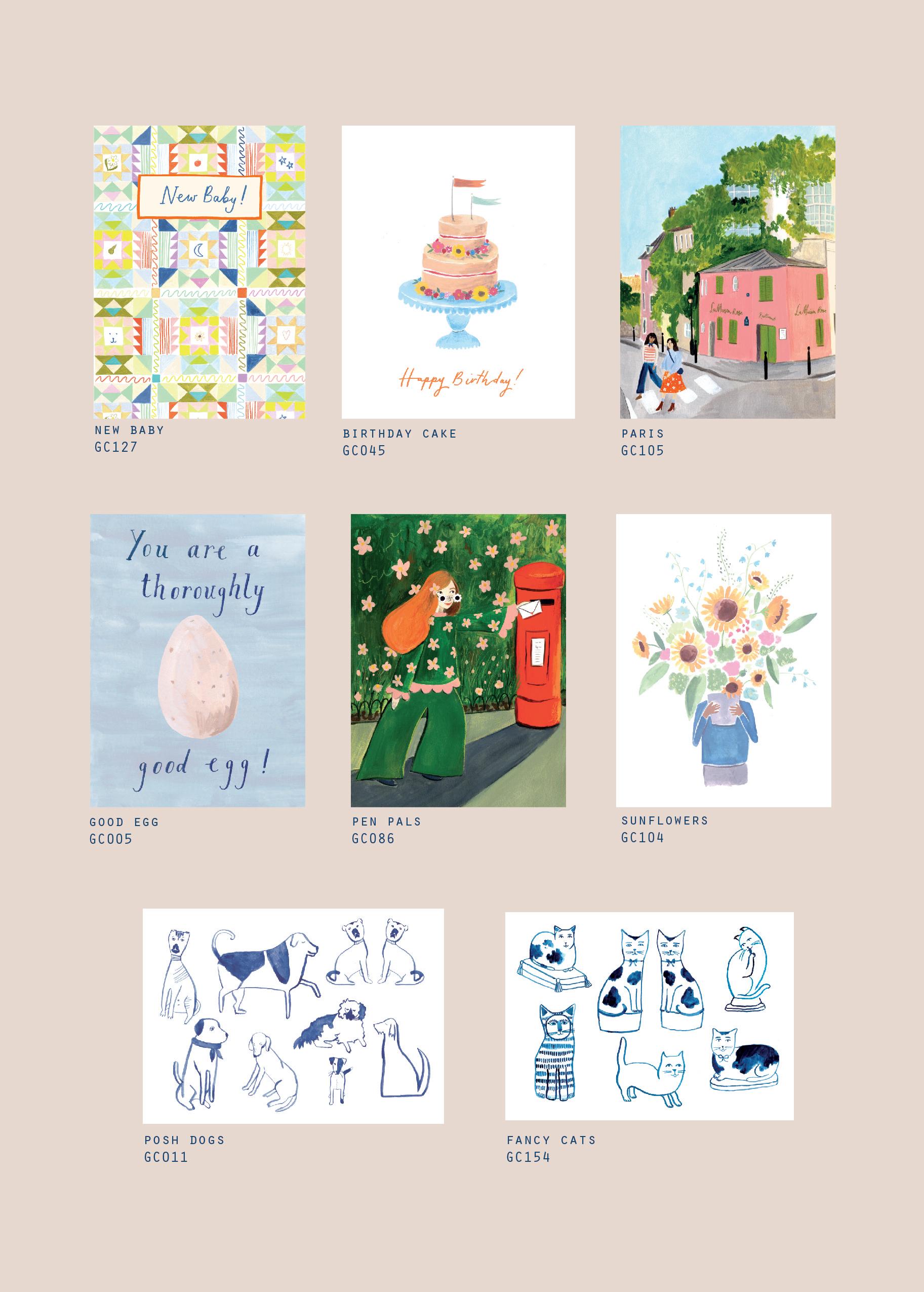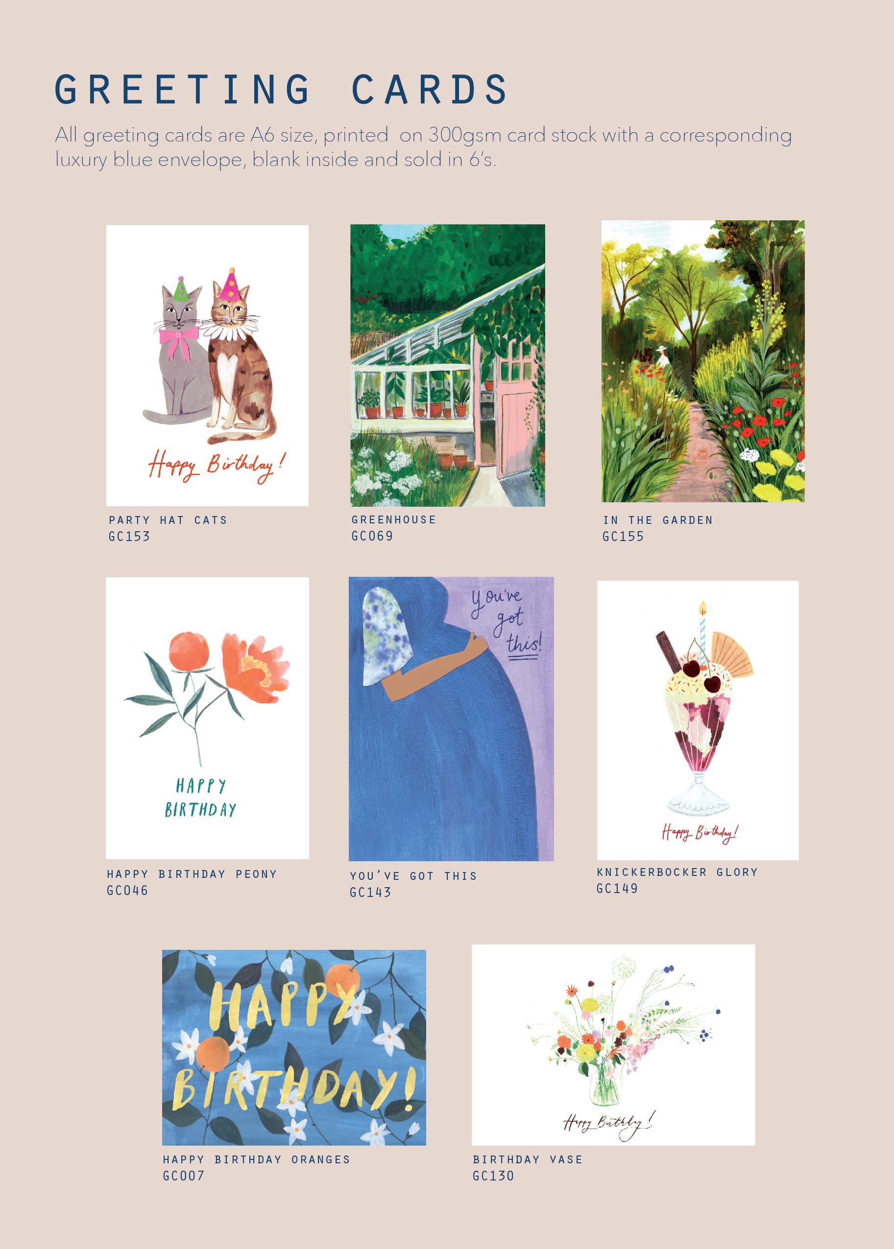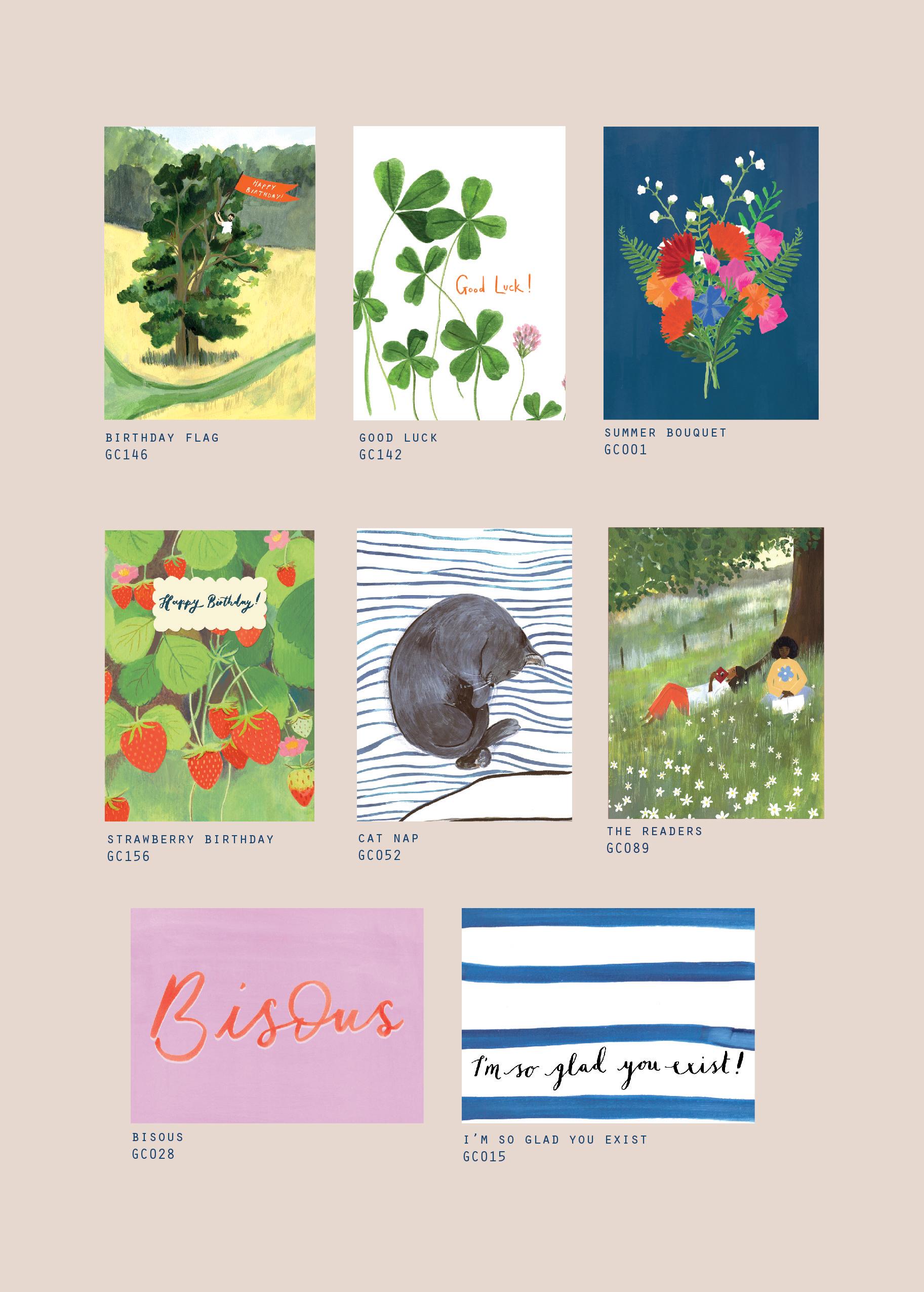 I’m so pleased to share my latest look book! This season brings some friendly new faces, long overdue designs for all the cat fans, and a card inspired by my childhood growing up on a strawberry farm! Everything is designed by me, printed locally and then packed by myself/ any family member that sits still for long enough!