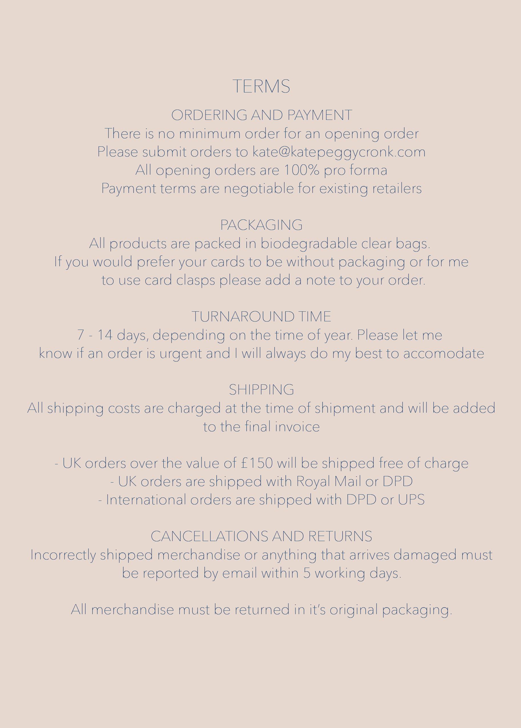 Each product is printed on FSC certfied paper stock, the cards and prints are packaged in biodegradable sleeves, or without packaging if you prefer.