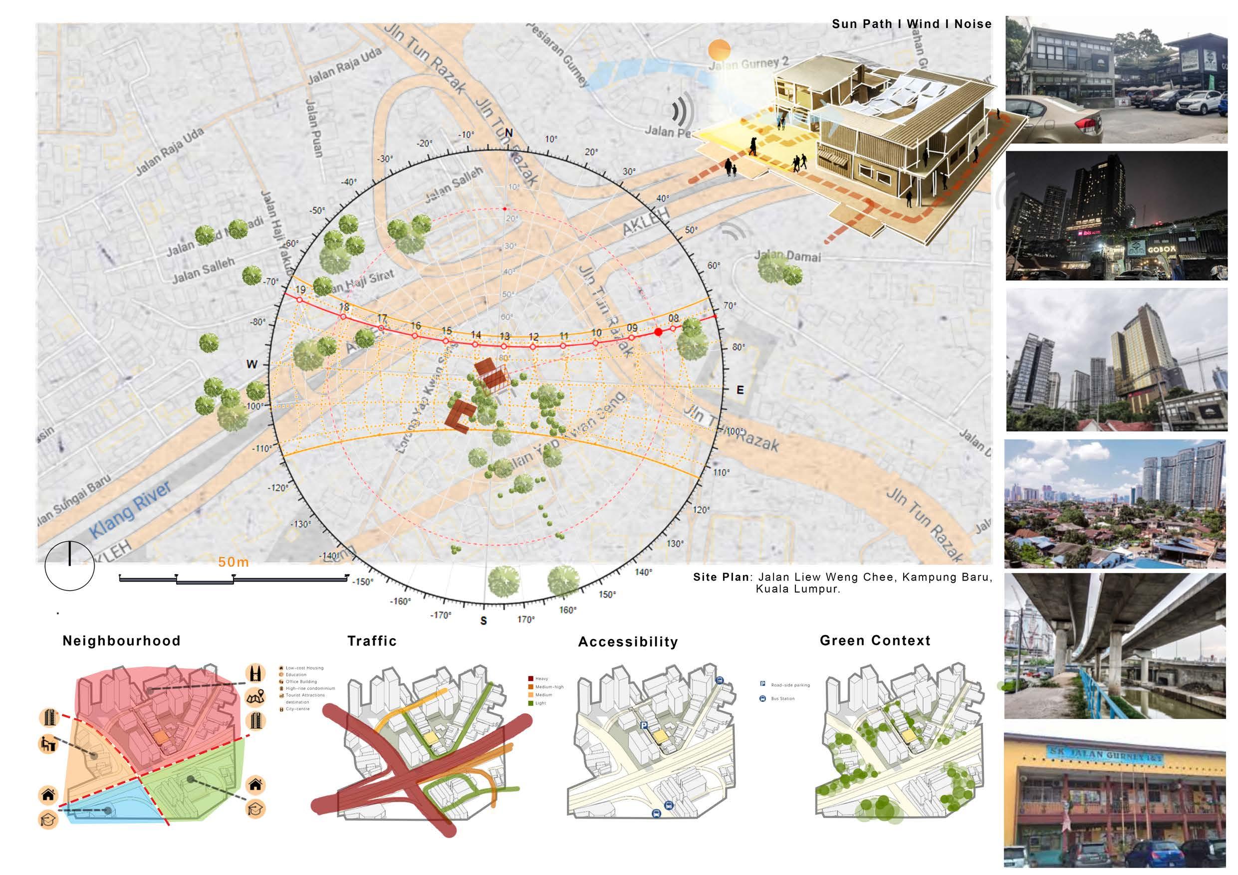 太阳路径/风向/噪音 场地平面图:马来西亚吉隆坡新村廖荣枝路 邻里 交通 可达性 绿茵成分