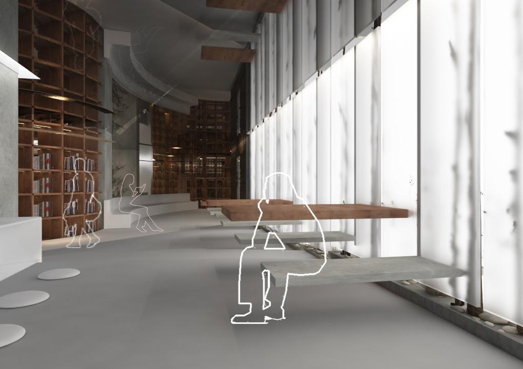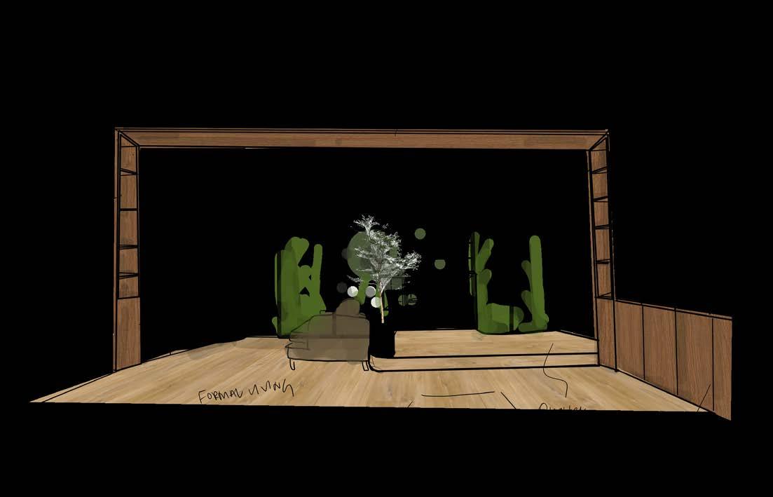 3D 空间模拟图呈现了该空间布局及设计的可能性-