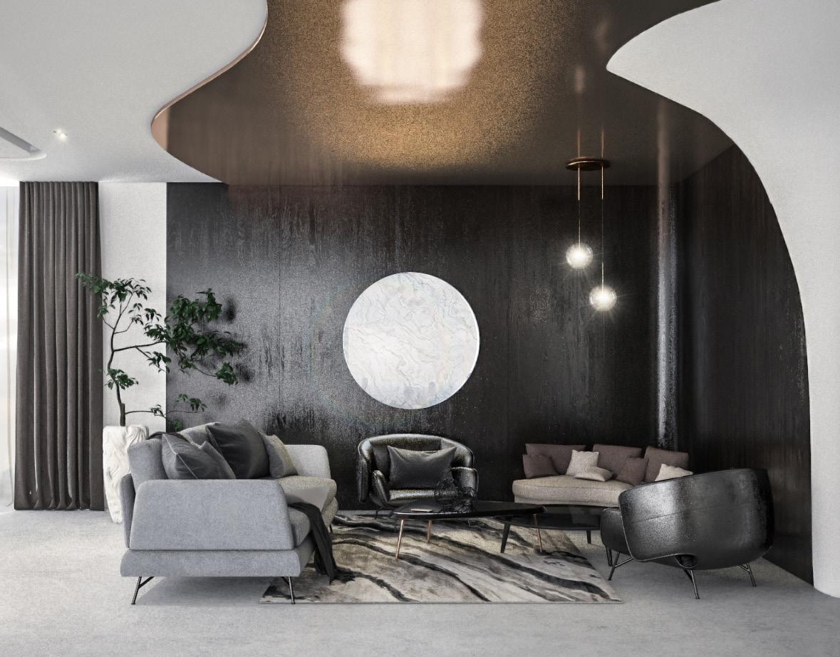 5 Living room openable wall (white) 3d render 客厅移动的墙( 白色)3D渲染效果图