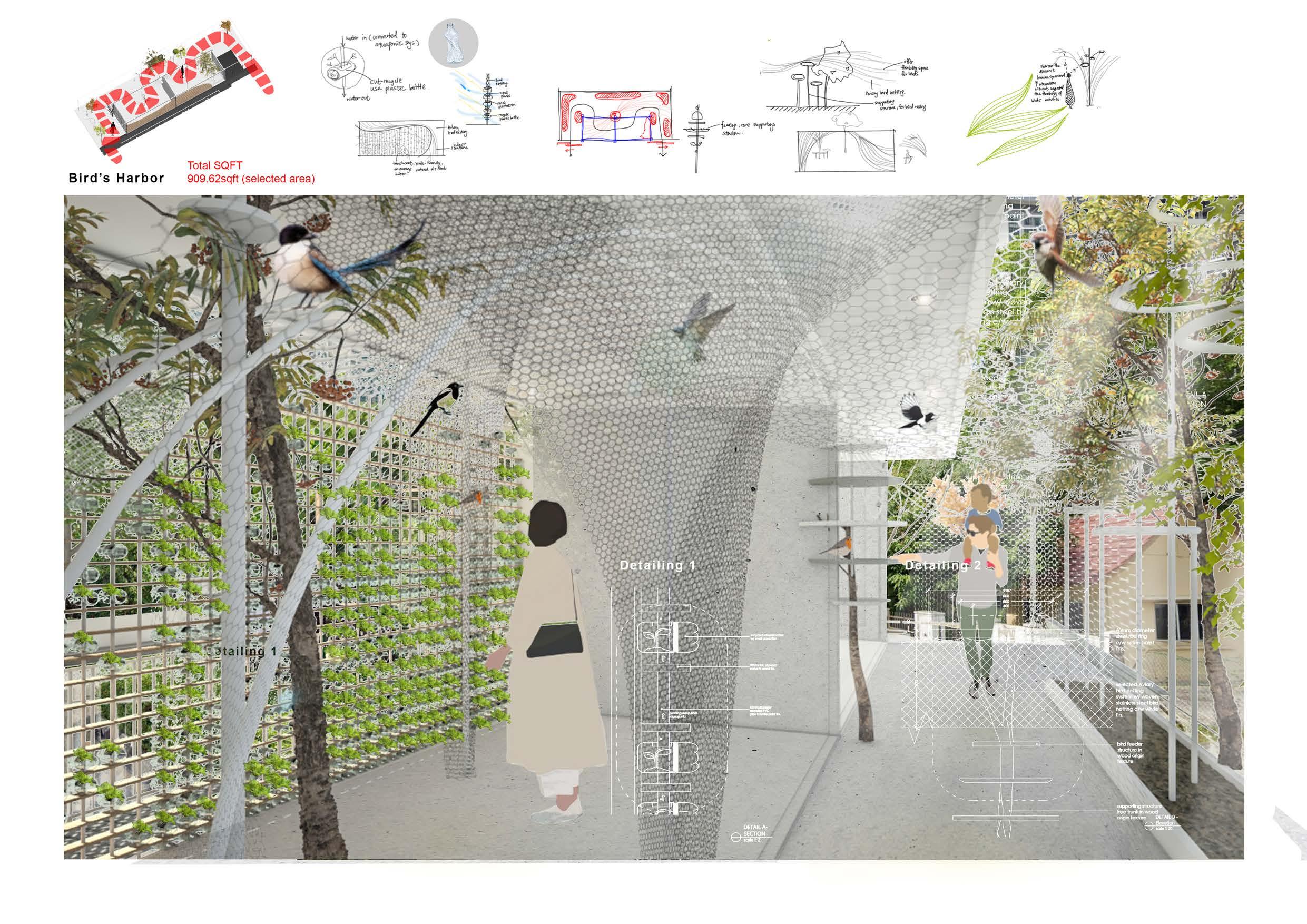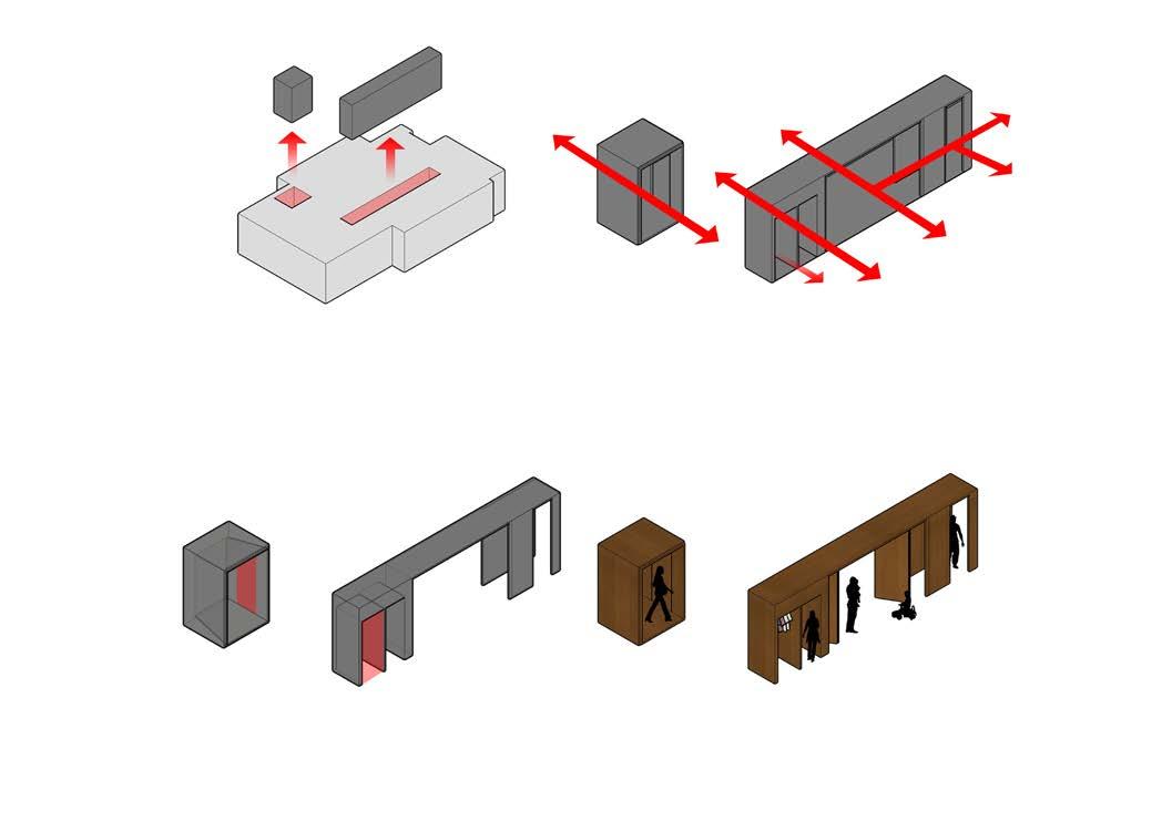 To show the facade retention. Each of the boxes from facade are able to be flipped and transformed into furniture.
