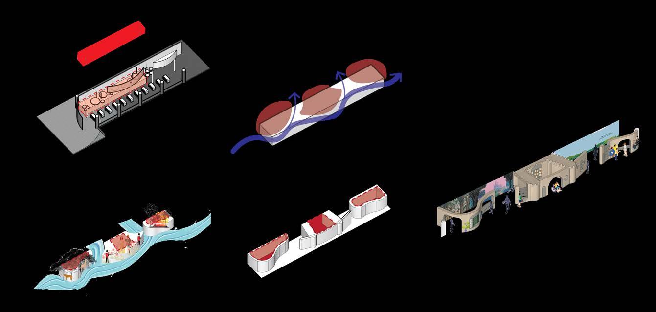 Conceptual infographic to show the design possibilities of the space (preliminary):