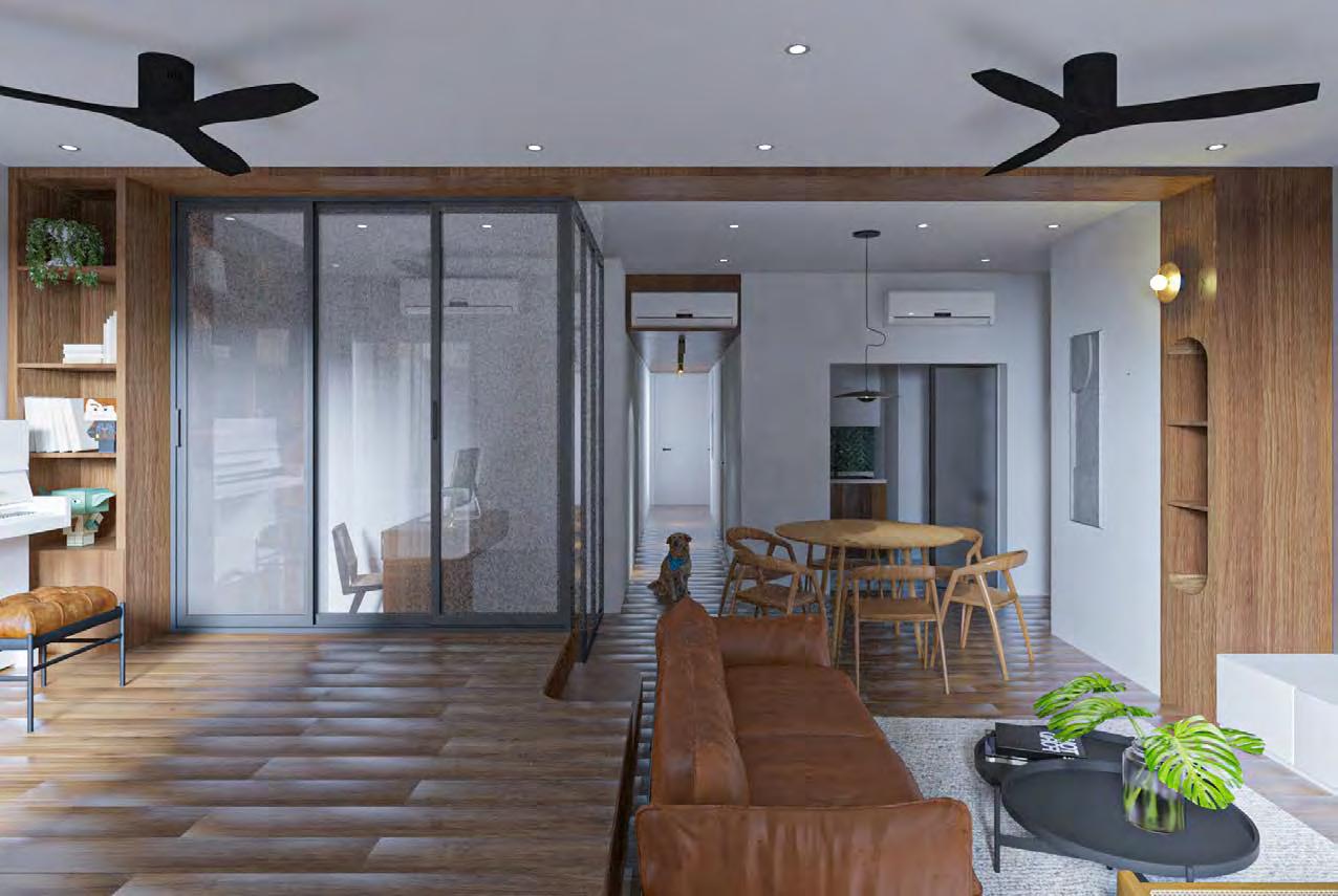 Designing ‘The Frame’ as a hidden area division yet it feels cohesive for a living space that housing many activity zones based on client requirements without adding a single partition or divider.