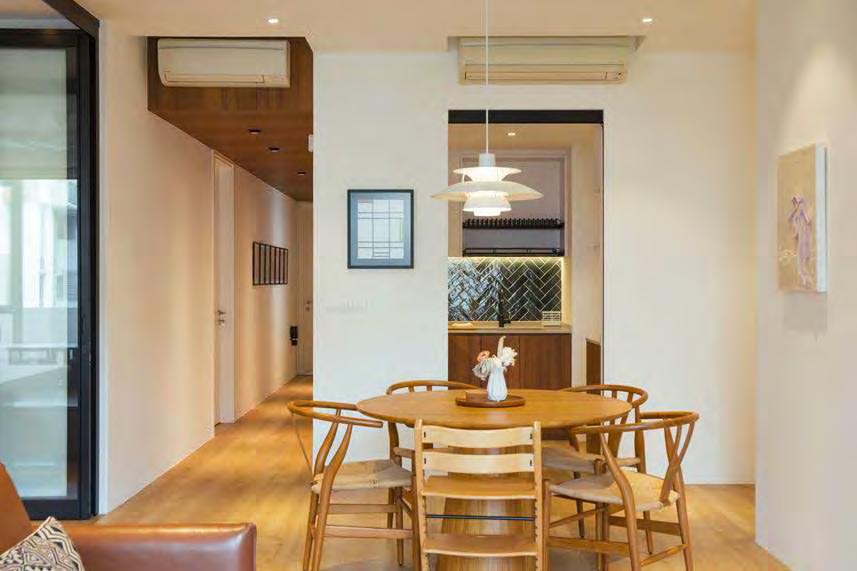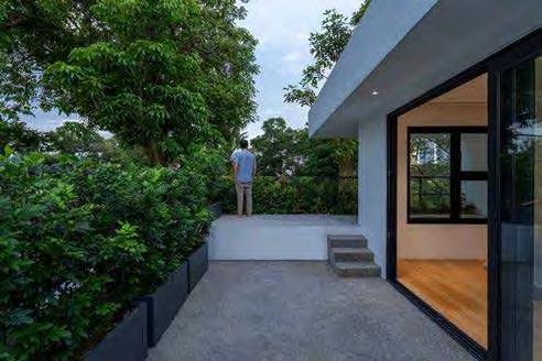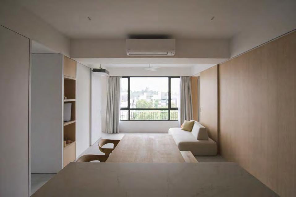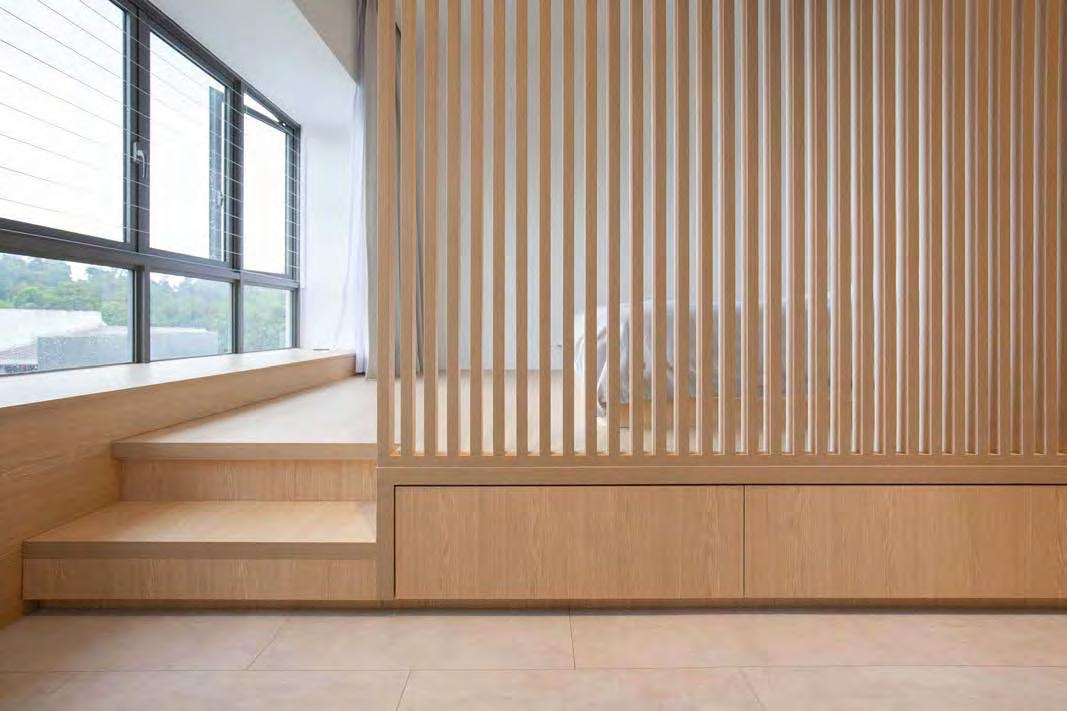 Mild and neutral materials are selected to blur the boundary and outlines of the space on the inside. The muted interior emphasizes the outdoor greenerie s view which the client likes it alot and it achieve the open and airy with non-blockage view indirectly.