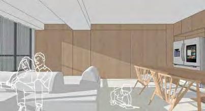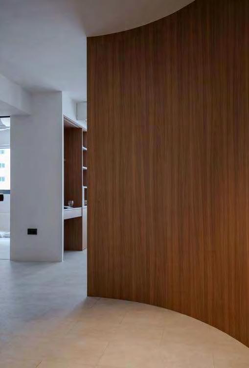 Explor ation in door can be wall and projector screen, transformable and shows the flexibility of the space. The openable wall increase the activities space for a compact condominium space.
