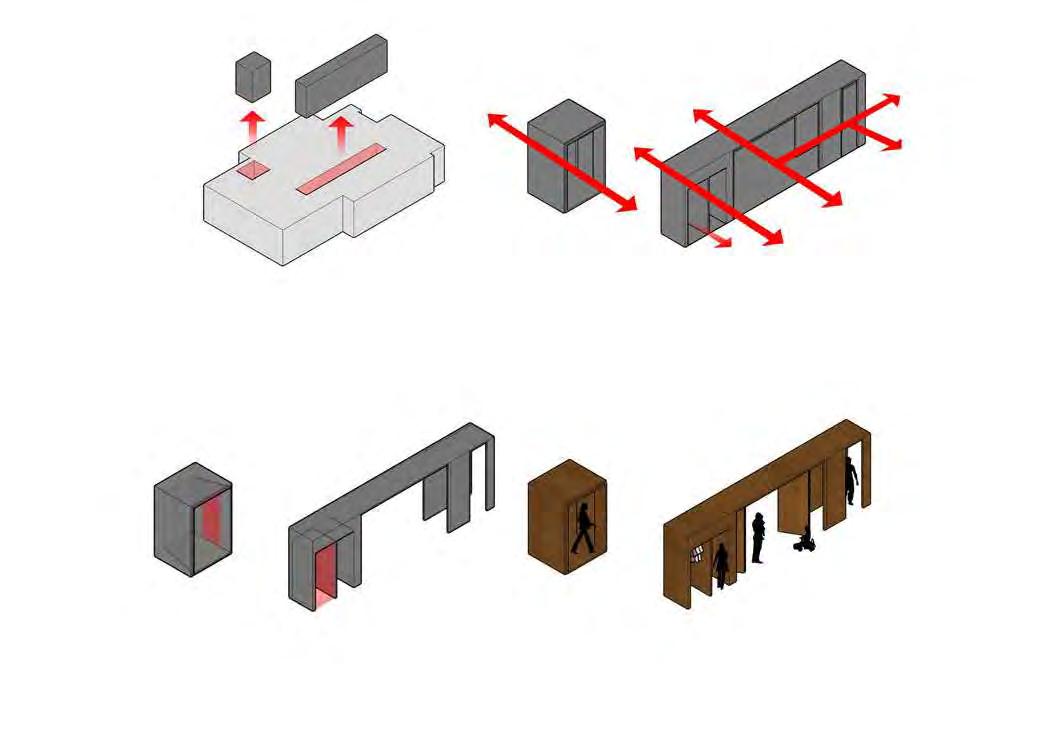 To show the facade retention. Each of the boxes from facade are able to be flipped and transformed into furniture.