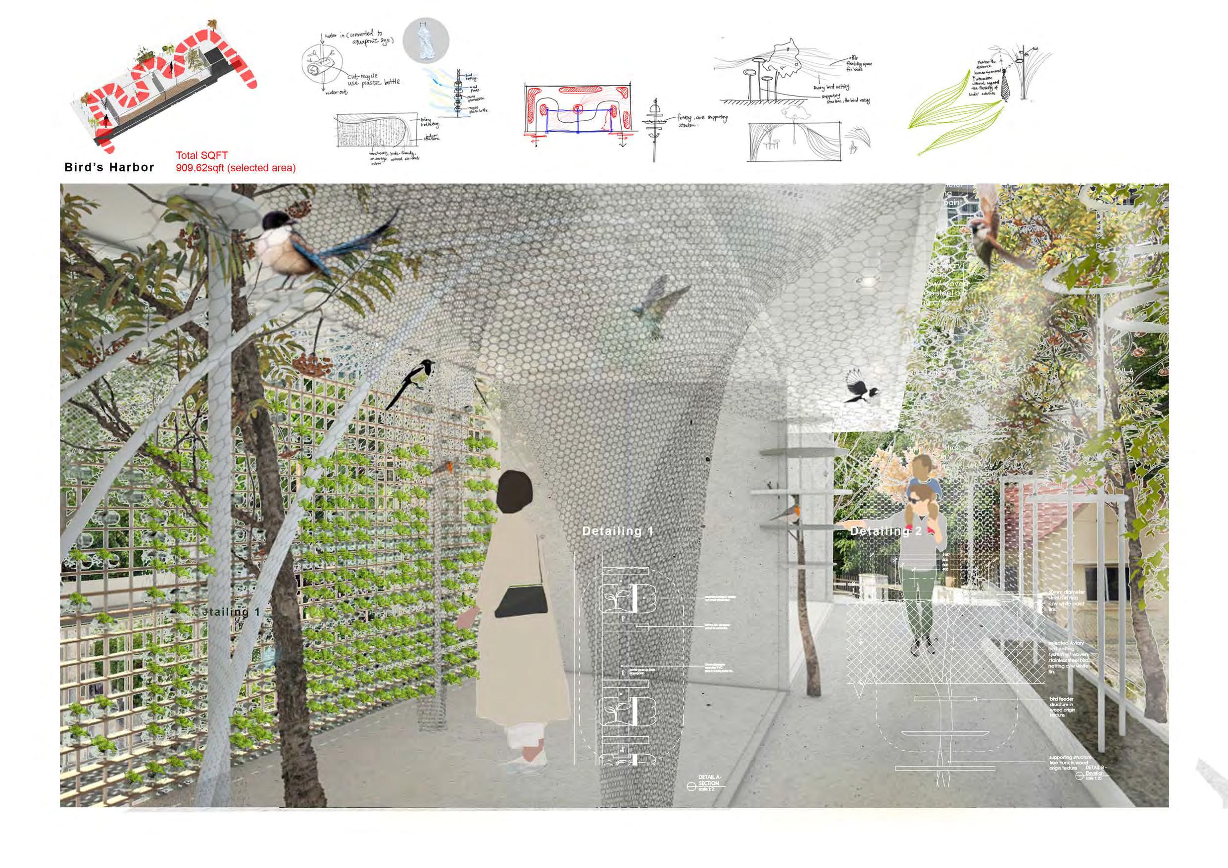 The challenge of this design is to create a sustainability design with limited budget. Plays with layerings to ensure the rich of structure and colors in the main view.