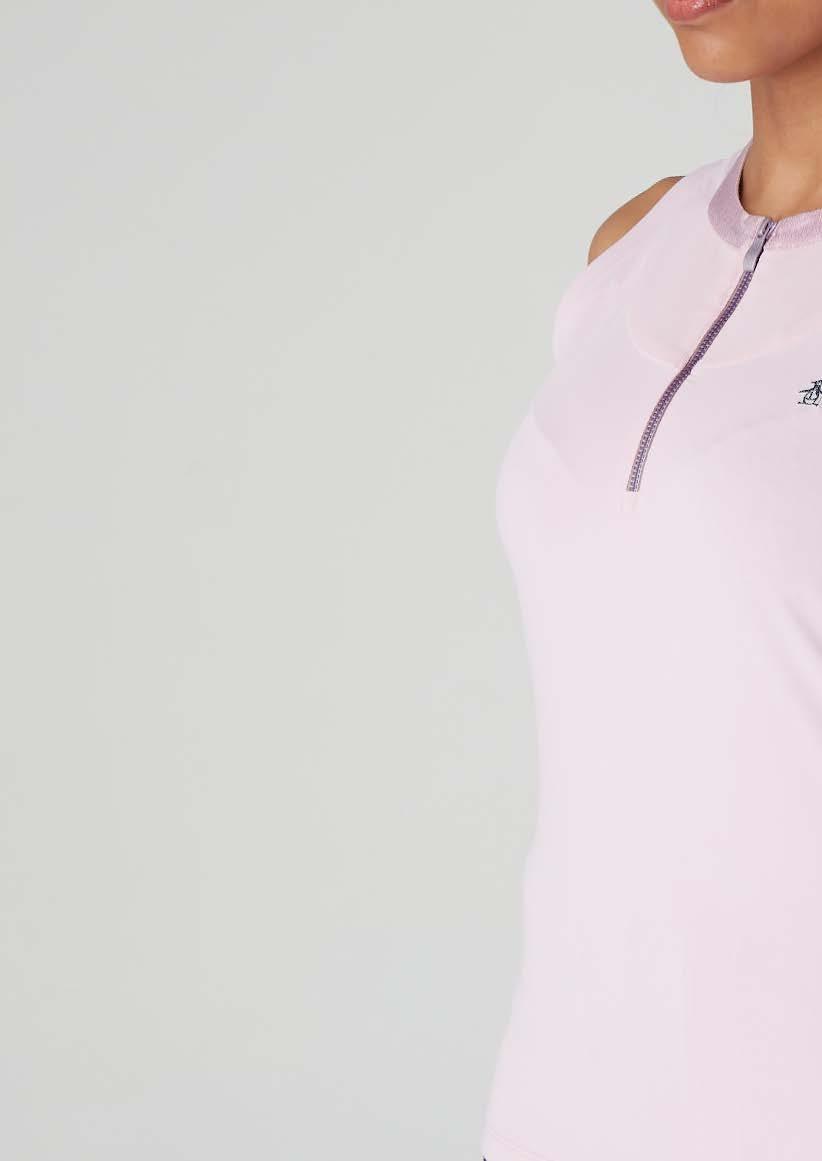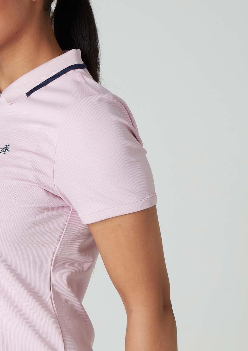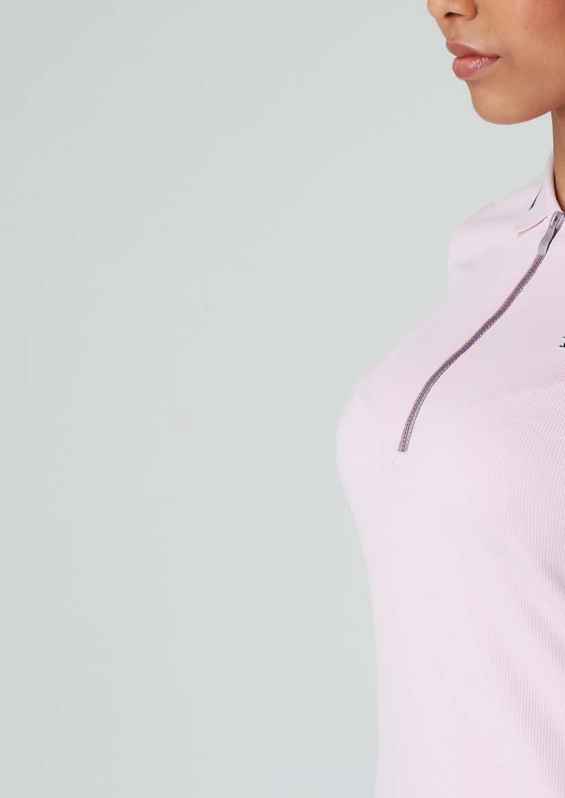 RIBBED POLO WITH METALLIC ZIPPER in Colour: 681 Charm Pink