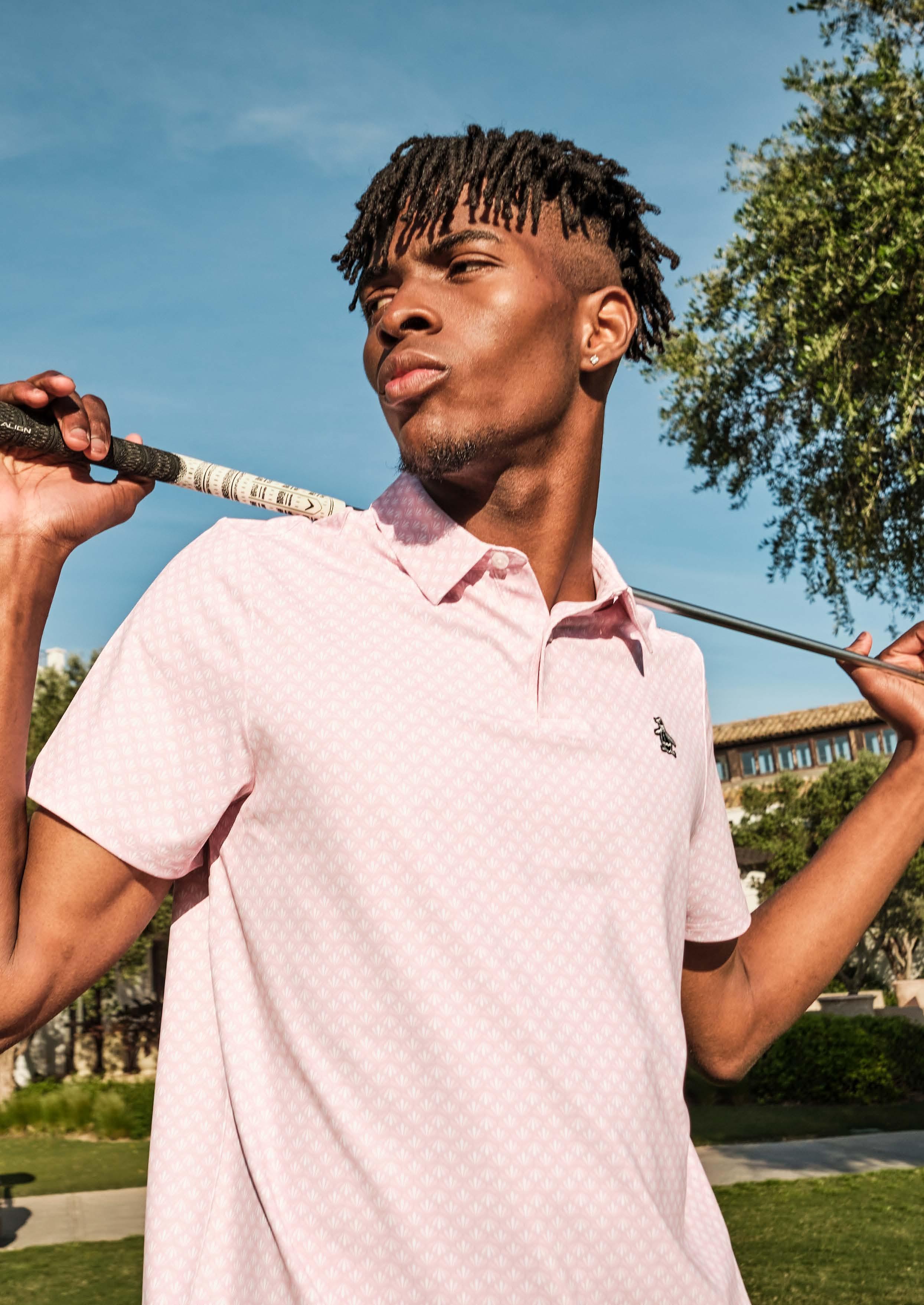 LAYERED UMBRELLA PRINT POLO in Colour: 680 Murex Shel