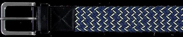 New woven stretch braided belt construction / Fine faux leather accents featuring debossed branding No hole design adds versatility and a perfect fit / Alpha sized Polyester Elastane blend / Classic antique metal buckle closure