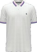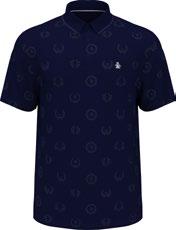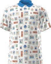 Pete patch on left chest / Stretch / Moisture wicking / Self collar / Open sleeve / 3-button placket / 56% Dull Yarn Polyester, 30% Recycled Polyester, 14% Elastane
