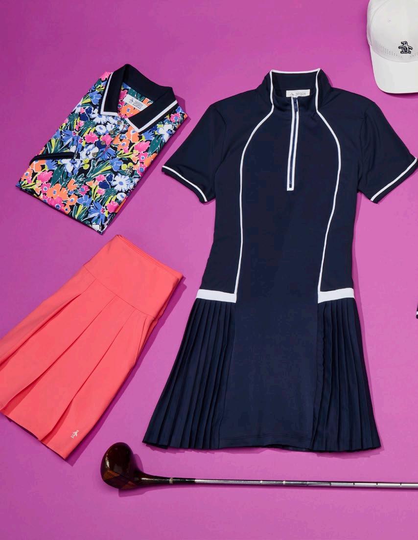OGDSG021 Polo Dress with Knife Pleats & Piping Detail