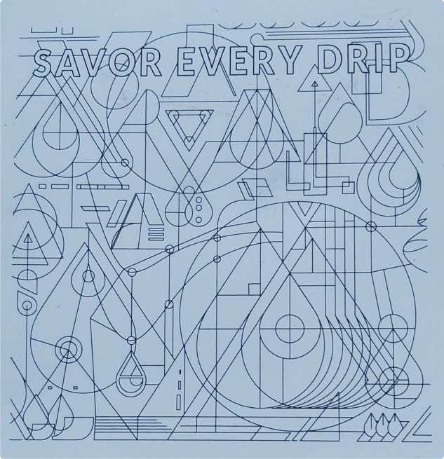 以咖啡色為基底,並以水波紋的方式,呈現高 貴卻又混濁的狀態。