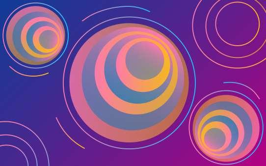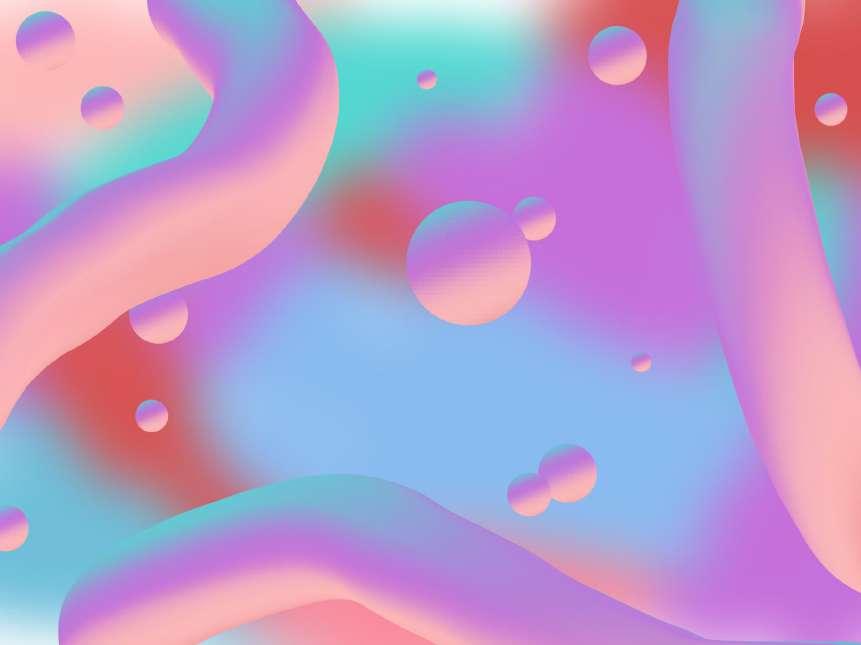 在模糊的背景前,以紫粉色的粉墨泡泡,象徵每 段相遇,都會經歷一段曖昧期,因此,呈現出撲 朔迷離的型態。
