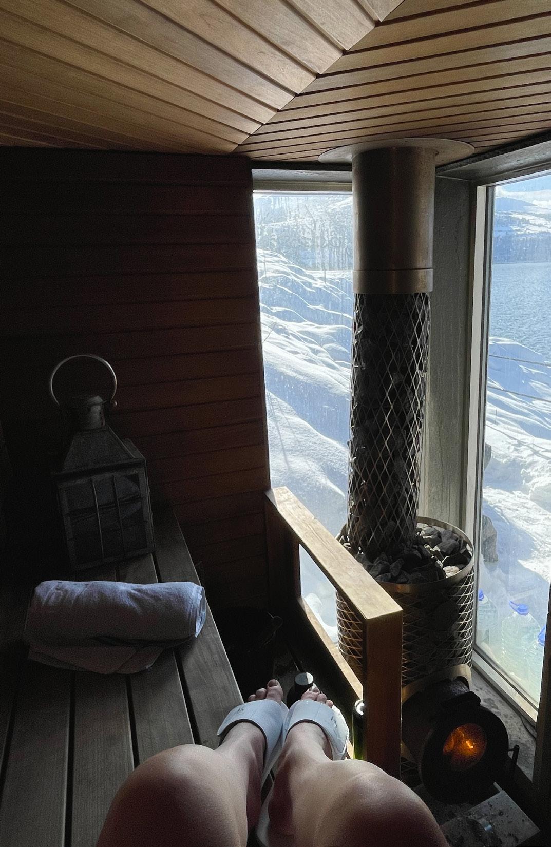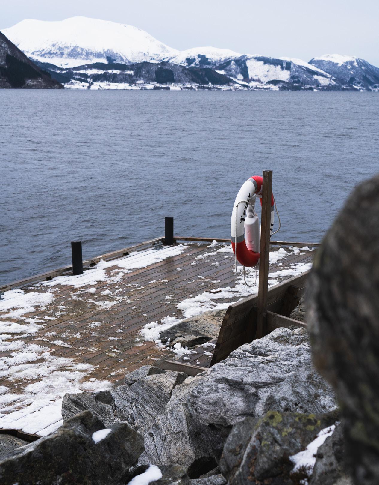 Through the wet season in Volda, the average temperature isn’t far from the freezing point. That makes a perfect excuse to get properly warmed up at Dynamittlageret – an old dynamite storage renovated into a wood-fired sauna. From Spinneriet, you follow Andanesvegen with its towering cliffs on the left and glittering fiord on the right. In 20 minutes by foot, you’ll reach the gravel path leading you to the little sauna-and-dock oasis between the rocks. It takes a couple of hours to heat it up, and it can be tricky to get above 40 degrees in the cold months. However, we found it the perfect temperature to stay inside for hours to enjoy the peaceful surroundings, the heat, and the company. And of course, a few ice baths are non-negotiable…