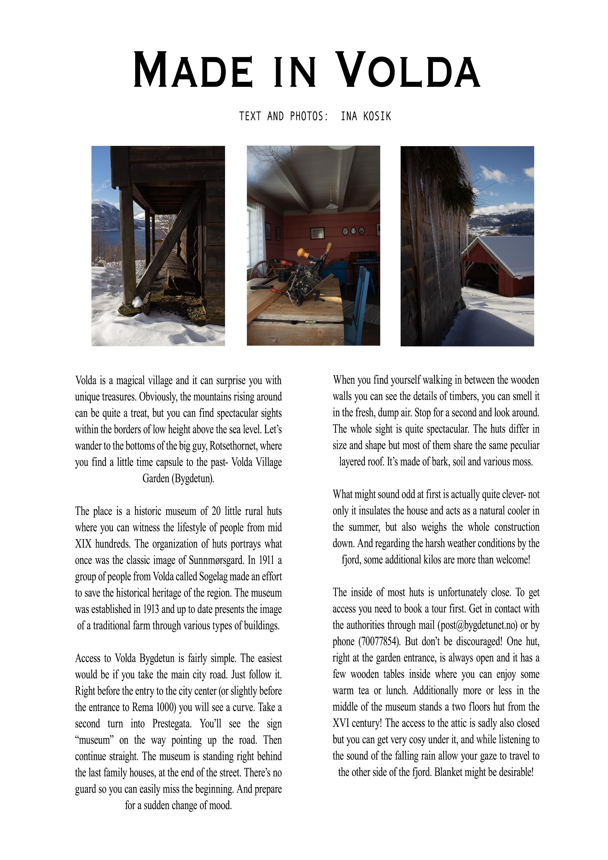 The place is a historic museum of 20 little rural huts where you can witness the lifestyle of people from mid XIX hundreds. The organization of huts portrays what once was the classic image of Sunnmørsgard. In 1911 a group of people from Volda called Sogelag made an effort to save the historical heritage of the region. The museum was established in 1913 and up to date presents the image of a traditional farm through various types of buildings.