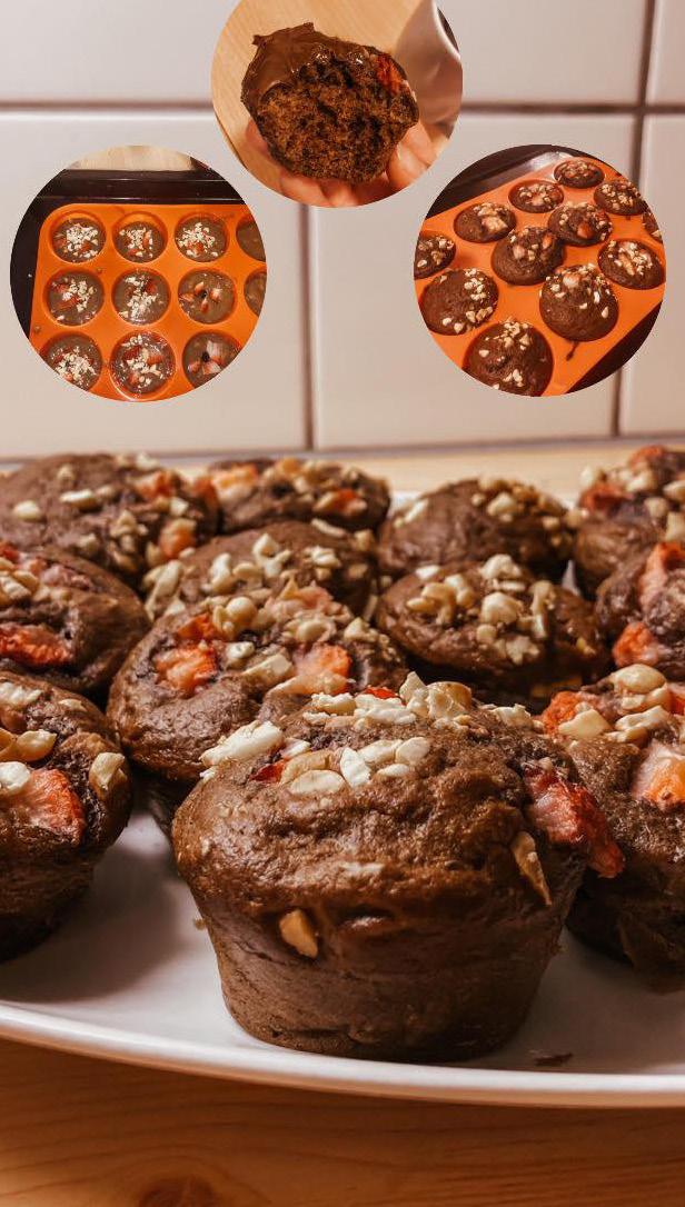 A recipe that I really like is that of banana muffins. In a bowl, mash 3 ripe bananas (260 gr) with 2 eggs and 2 spoons of peanut butter/chocolate. In another bowl, prepare white flour (200 grams) which is mixed with 1 tablespoon of sodium bicarbonate. Gradually pour the mixture from the first bowl over the flour bowl. Mix well. Then, pour the mixture into silicone molds for muffins and sprinkle other fruits (I used strawberries/blueberries) or crushed nuts on top. Leave in the oven for 30 minutes at 180 degrees. Check with the toothpick if the dough is done and does not stick to the toothpick.