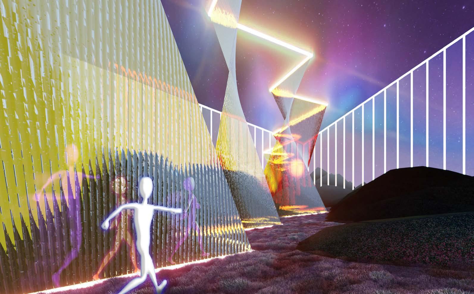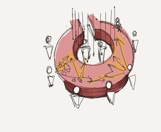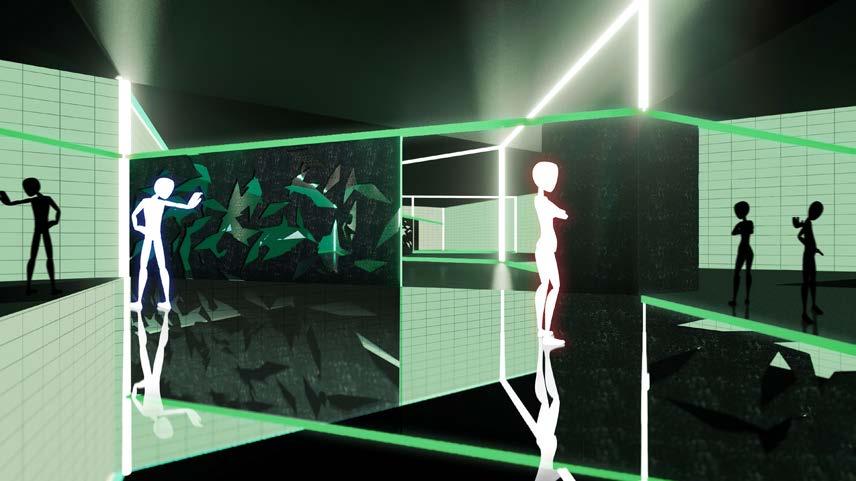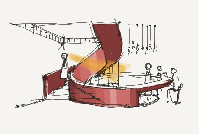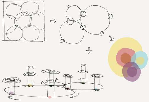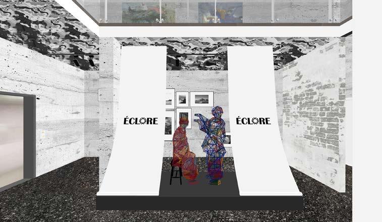 The concept will be applied to architectural structures. One will see the rotating installation hanging from the ceiling on the first floor like a slowly blooming flower. It will be the highlight of the entire gallery. Echoing this is another opening to the roof, filled with euphoria.