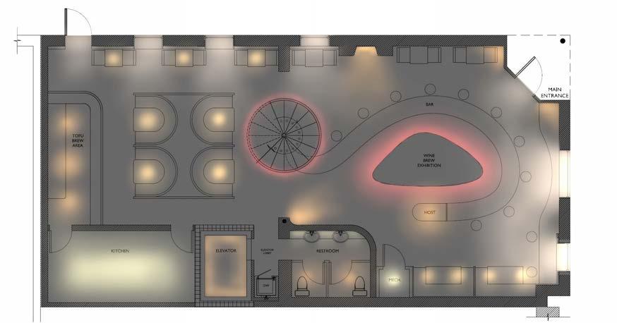 The brewing and craft areas in the kitchen will also emphasize these recycled functions and concepts. At the same time the overall atmosphere of the restaurant will be warm and positive, giving a sense of pure and simple quality.