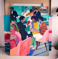 The hanging paintings are flexible and can be taken down if the space needs to be empty.