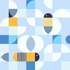 I design a bee pattern as wallpaper, using light blue color to match peaceful study environment.