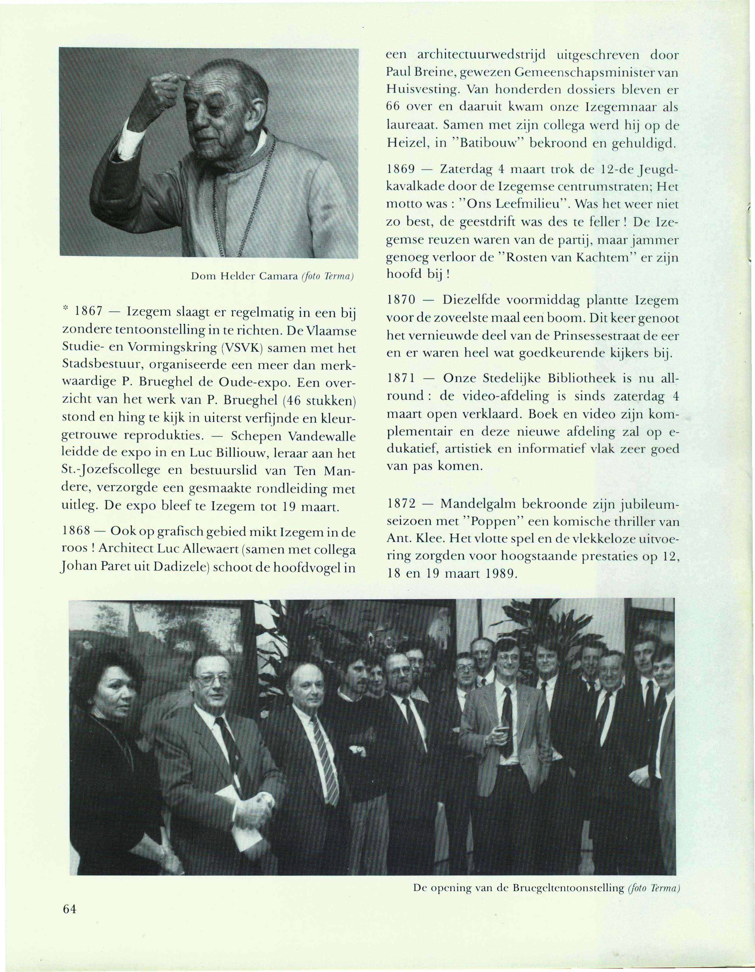 ,;, 1866 - Dom Helder Camara, tekst-auteur van voornoemde symfonie, werd te Izegem en elders in Vlaanderen uiterst hartelijk onthaald. Hij sprak de laatstejaarsleerlingen van de Izegemse middelbare scholen in het Sint-Jozefscollege toe en werd ten stadhuize ontvangen.