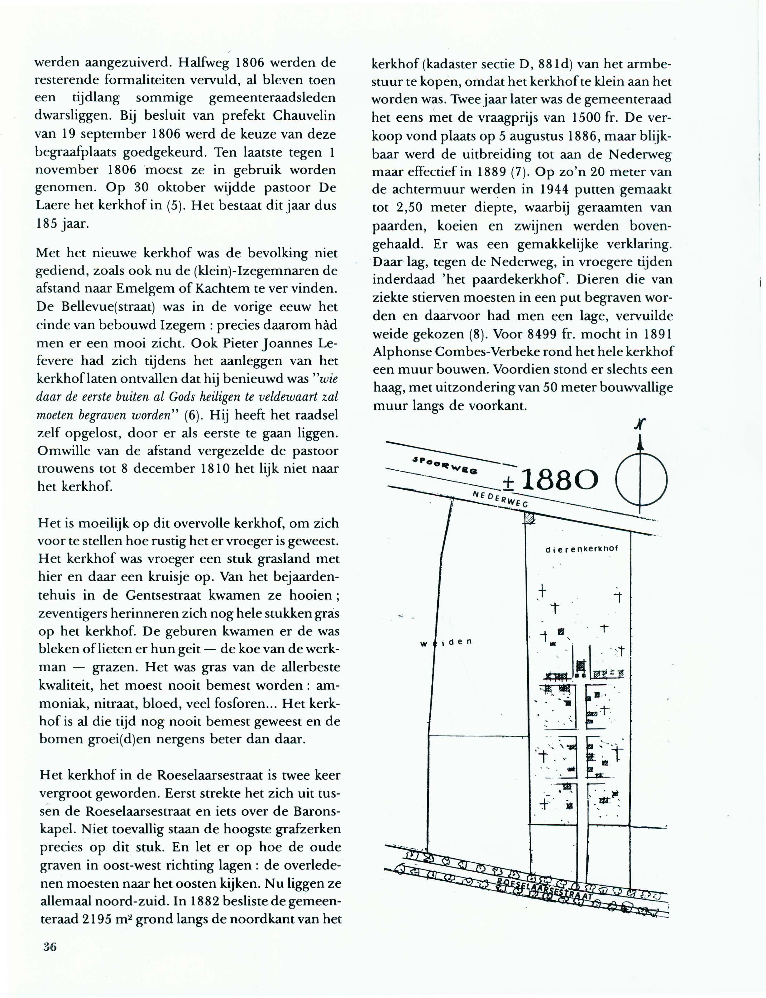 Het oudste graf op het kerkhof in de Roeselaarsestraat is dat van Eligeus Ameye-Deraedt 05-2), die overleed op 20 mei 1846. Alleen het ijzeren voetstuk met de inscriptie ("Hier rust in vrede gelyk hy geleeft heeft (. .)" staat er nog. Albert Vandommele gaf jaren geleden het kruis in herstelling, maar het is nooit teruggekeerd. D e eerste die op dit kerkhof begraven ligt met een vergunning is dokter Maes-Vanackere (G6-3). Het graf dateert
