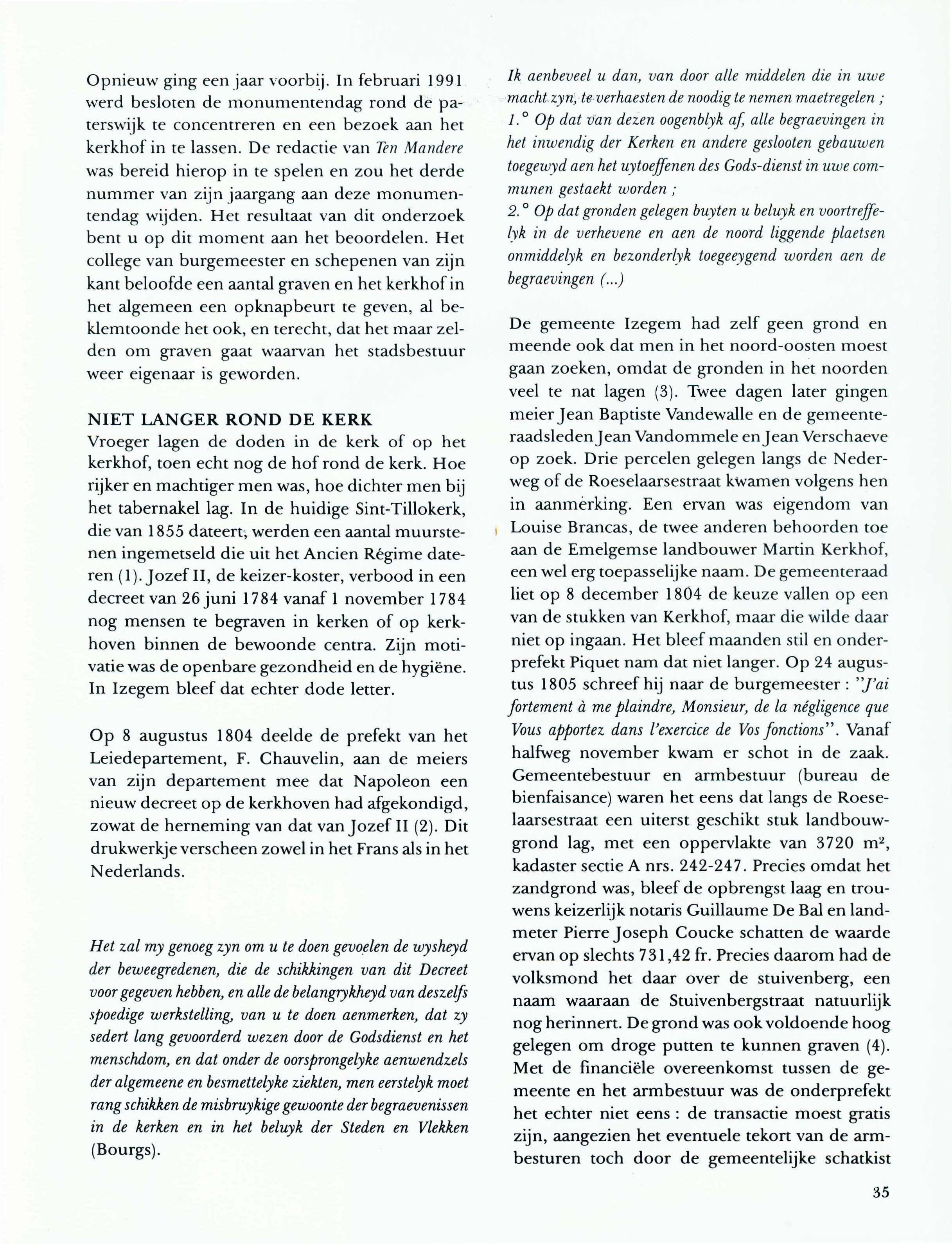 3. "( .) et qu'il n:V a vers le Nord presque d'autres terrains que de prairies semblables a des marais, comme tenant immediatement a la rivi ere La Mandel" ; deliberatie van de gemeenteraad, 14 frimaire an XIII (5 d ecembe r 1804 ).·