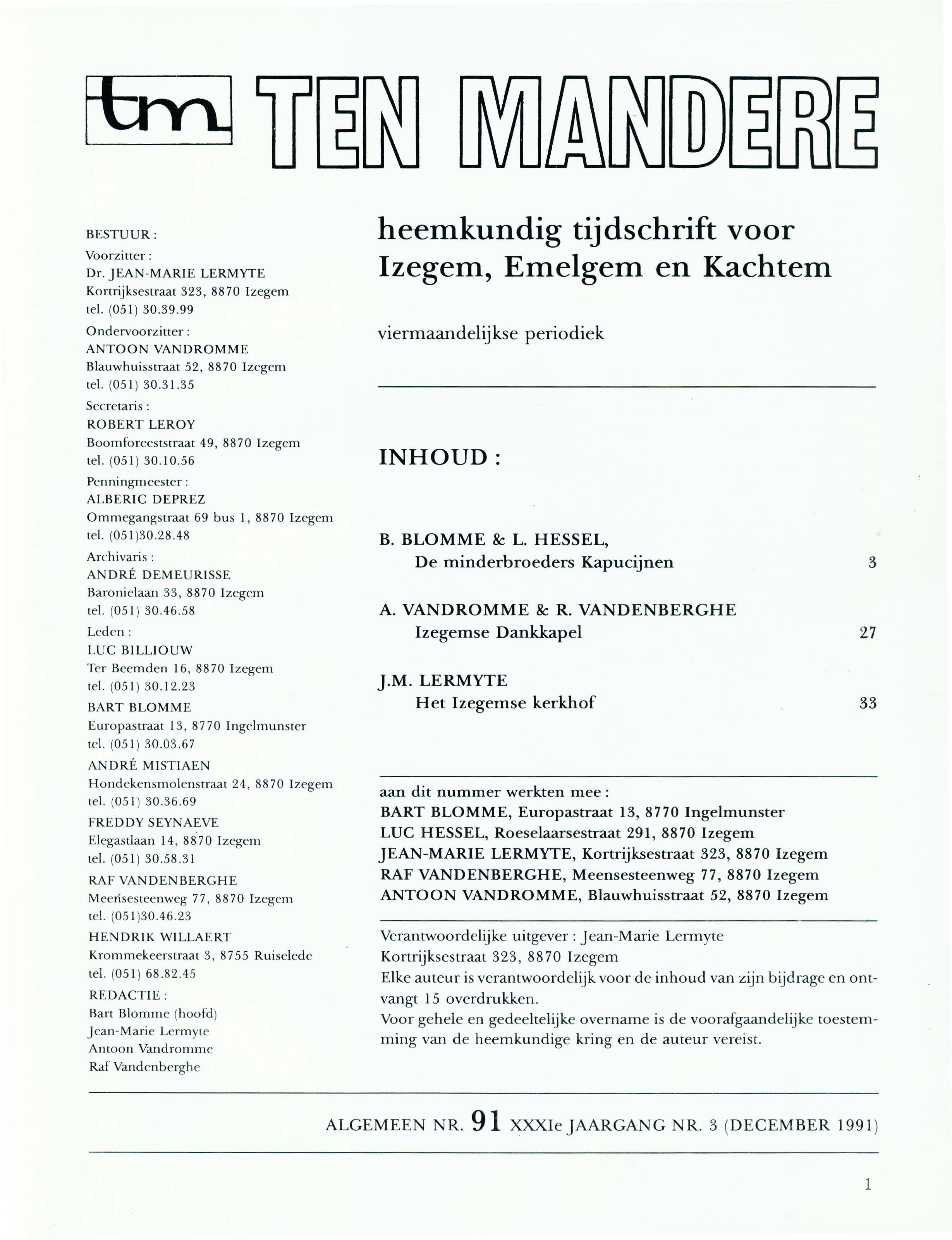 20. Zie v I. P. D [EC LERCQ] in De Mandelbode , 10 en 17 nov 19 51, aangevuld met herinneringen van Alb e n Vandomm elc.