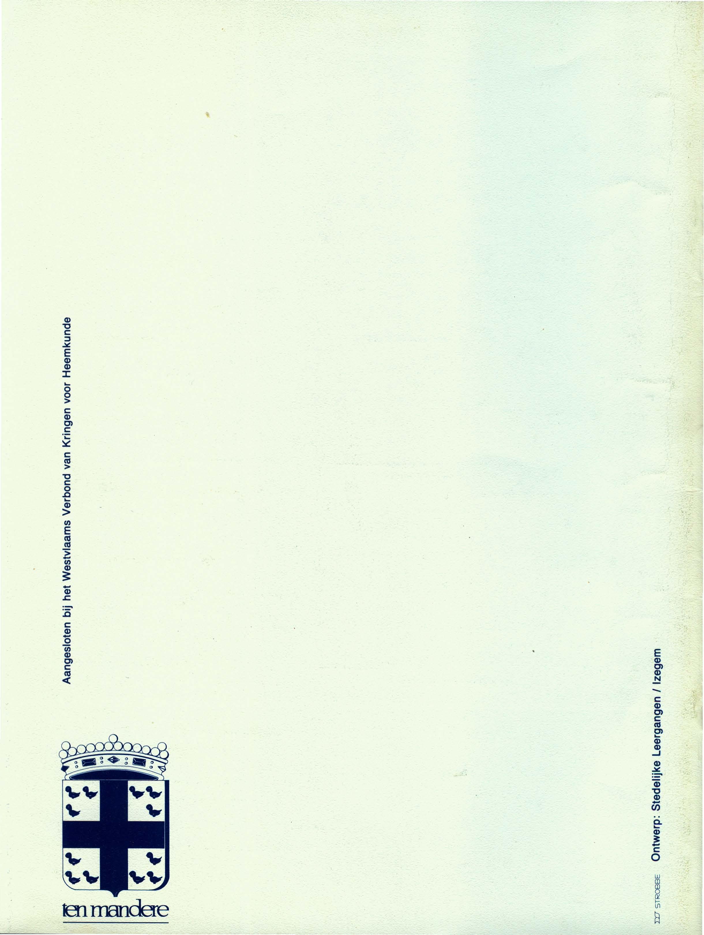 Antoon VANDROMME (red.). E.H. Leopold Slosse en het Izegemse Slossefonds [met index van het Izegemse Slossefonds en biografie van Slosse] (gestencild) uitverkocht Jean-Marie LERMYTE (red.). Geschiedenis van Izegem (1985) uitverkocht Jean-Marie LERMYTE. Het 81auwhuis en Izegem (1990) . 1050 ,fr . Vier nummers van Ten Mandere werden verzameld in Roger BEKAERT. Izegem in de Franse tijd (gestencild) i250 fr.