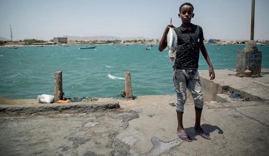 Berberan satama. Pienillä veneillä ei ole keskikesällä käyttöä. Kuumuus ja tuulisuus estävät lähirannikolla kalastamisen. Näillä pienillä veneillä voi kalastaa vain kuuden kilometrin säteellä rannikosta. Kalastus on kuivuuden takia yksi harvoja ravinnon ja toimeentulon lähteitä. Kalastajia on paljon, kaloja aina vain vähemmän. "Khawaaf" -kommentti kuulaankin usein. "Tulimme takaisin tyhjin