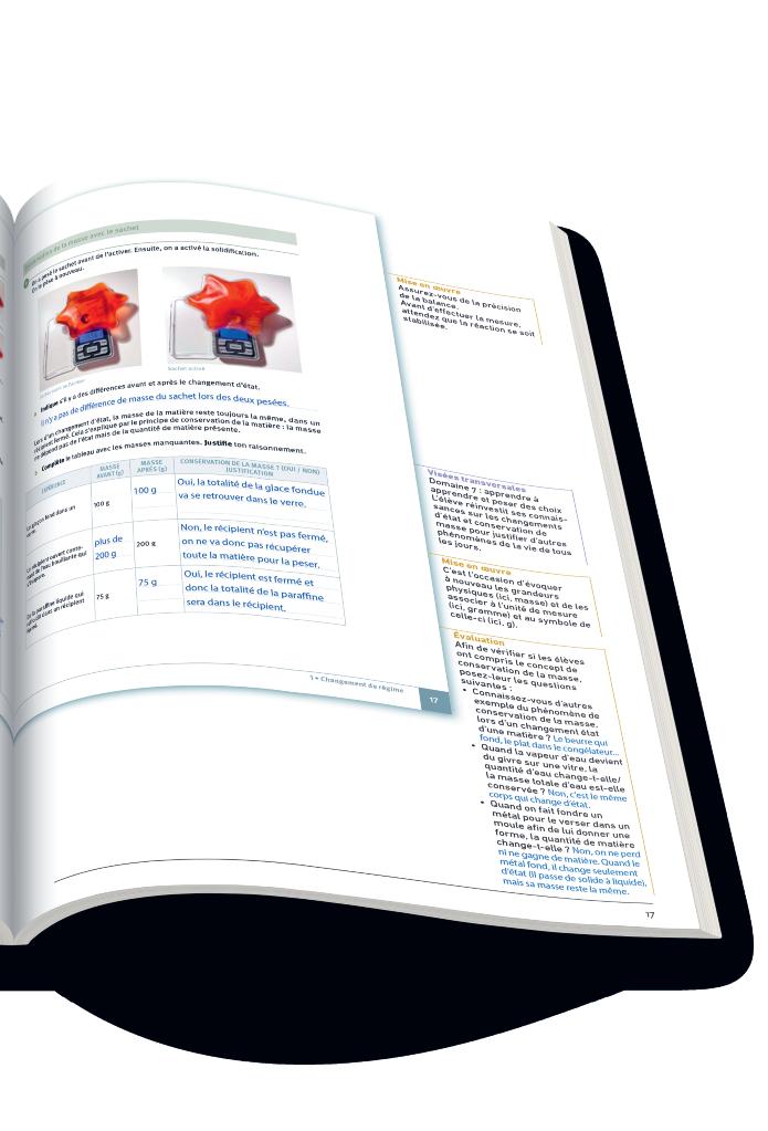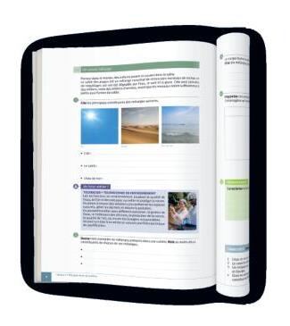 – Au centre du guide du professeur, le livre de l’élève avec les solutions.