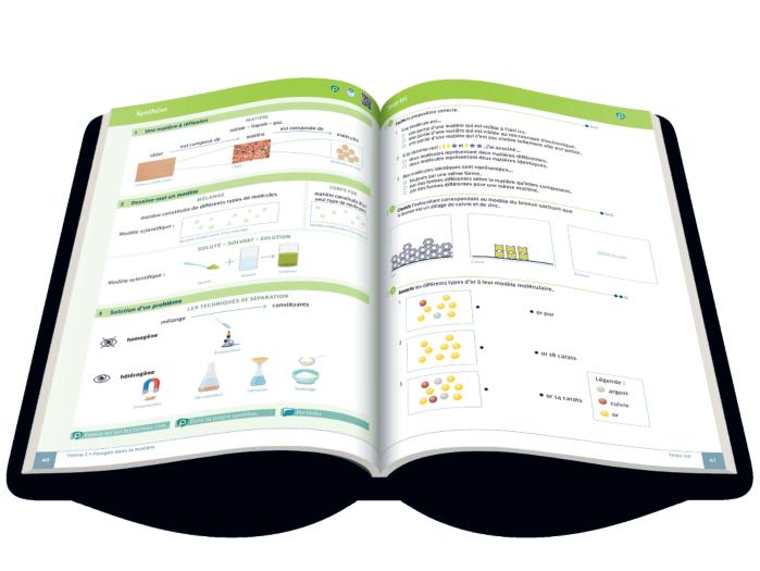 À la fin de chaque thème se trouve une synthèse visuelle, suivie par la partie Teste-toi où l’élève peut à nouveau s’exercer.