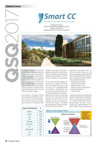 El objeto social de Smart CC se centra en el desarrollo de actividades de centro de llamadas, atención al cliente y externalización de procesos de negocio. Como visión de futuro quieren ser el proveedor de BPO para empresas que innoven en tecnología y distinguirse en el soporte de soluciones para el mundo de Internet de las cosas. Se definen también como una empresa de BPO y Contact Center Low Cost, basada en las diversas ventajas económicas y fiscales que